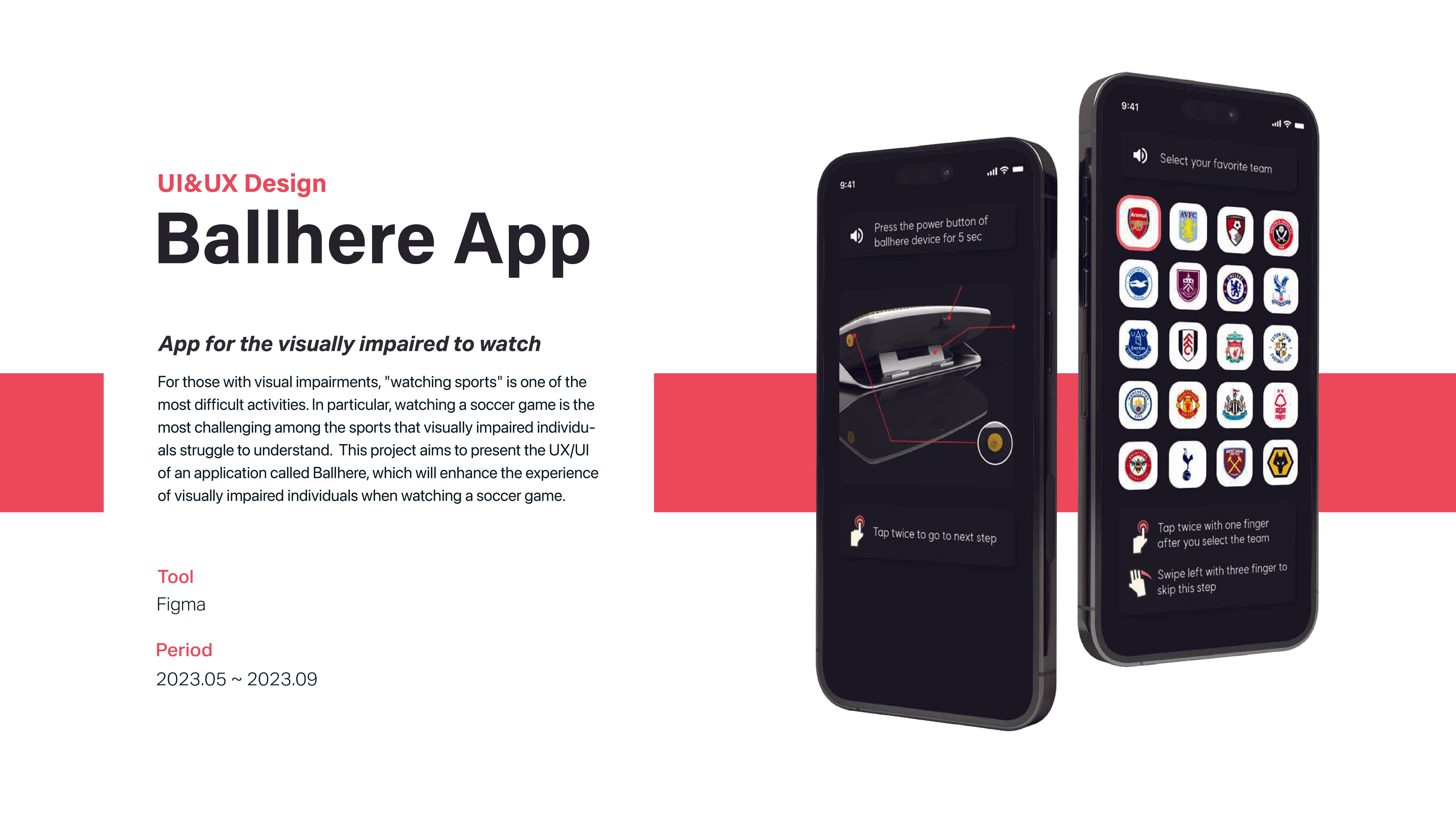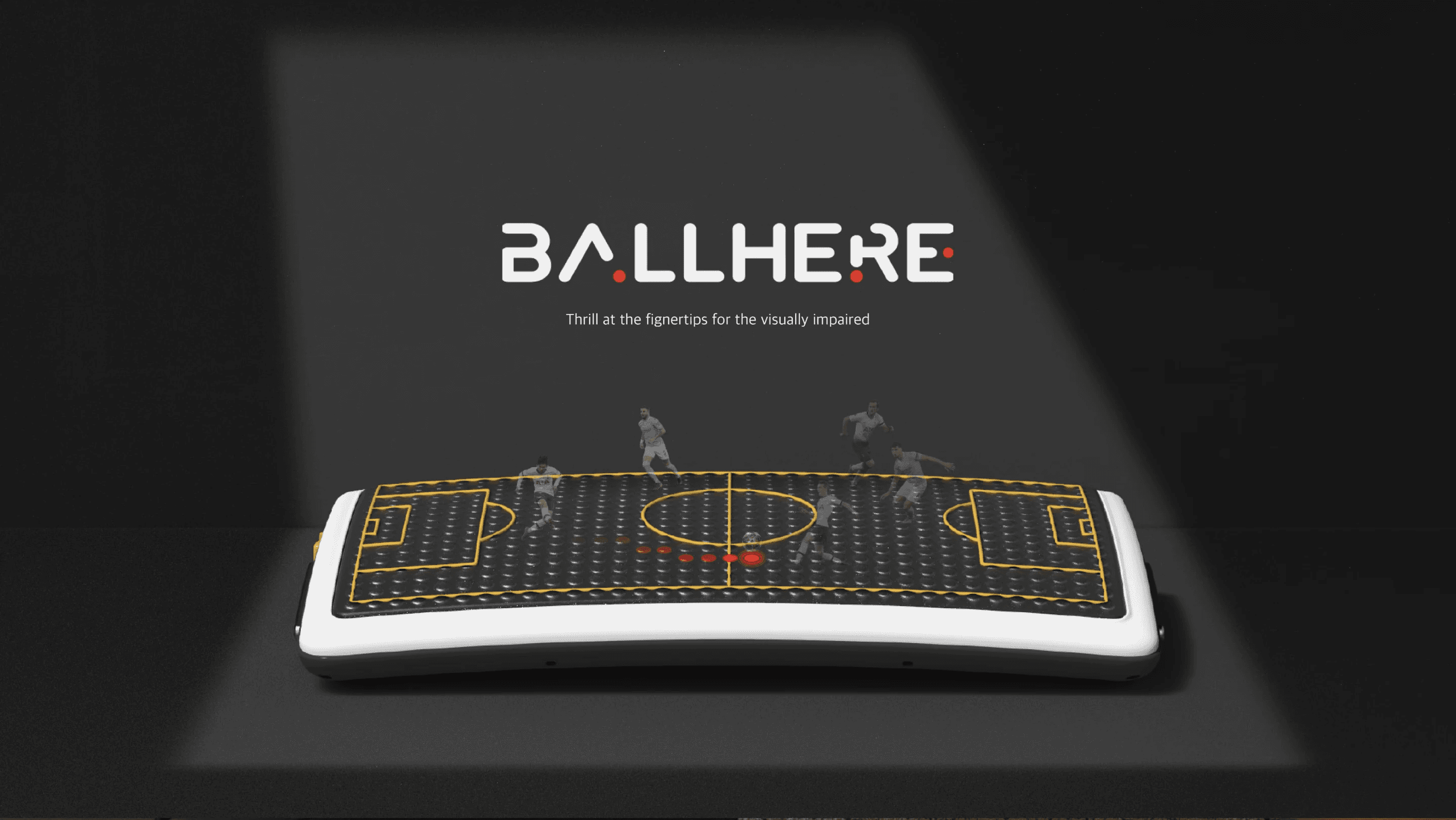 For The key function of this product is haptic interaction provided through a vibrating element in the shape of Braille, which is familiar to the visually impaired. Based on research on usability obtained through mock-ups, I adjusted the functions and size of the product to enable the visually impaired to actively and comfortably watch a soccer game.